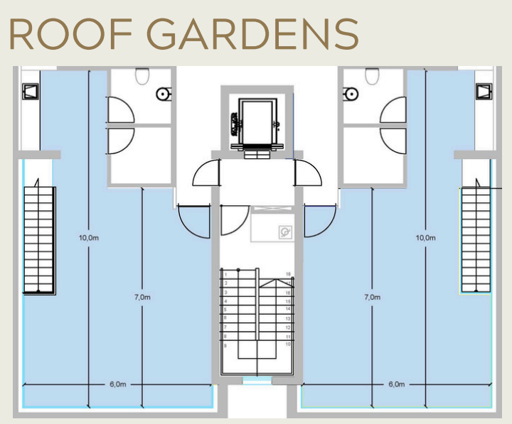 Generous balcony depths enhance outdoor living while improving shading and thermal comfort throughout the year. At roof level, private terraces and auxiliary spaces elevate the residential offering, providing exclusive outdoor areas with increased privacy, panoramic openness, and the opportunity for personalised outdoor experiences.