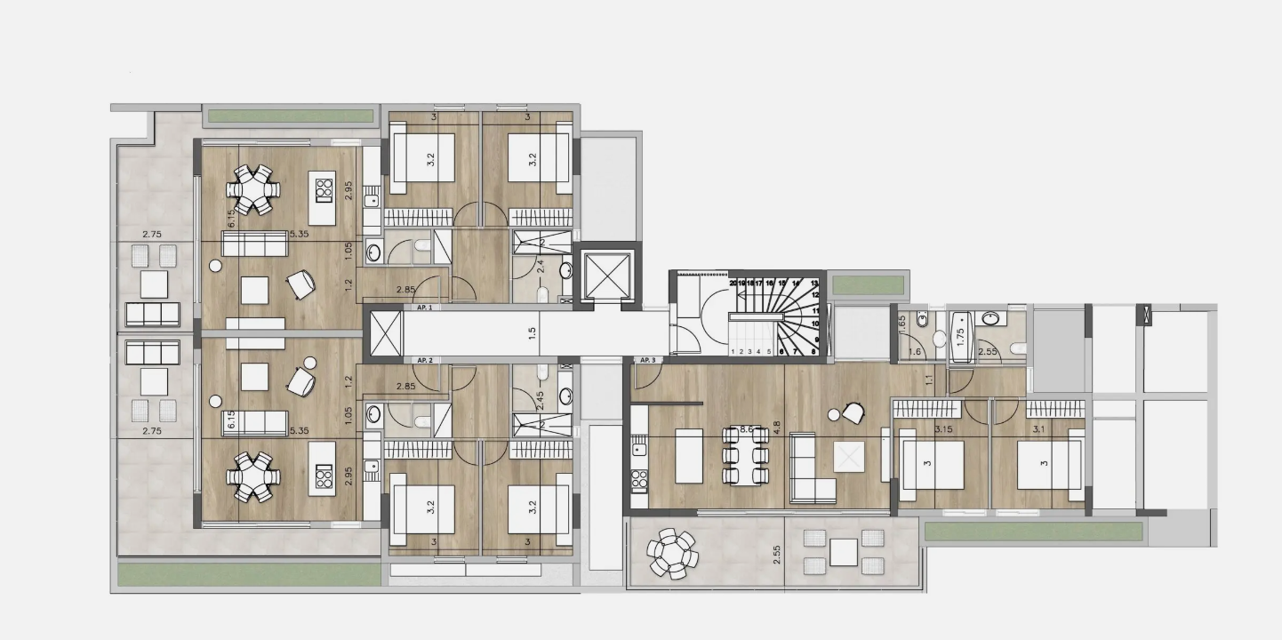 Five apartments available for sale with asking price between 475.000-745.000euros plus vat.