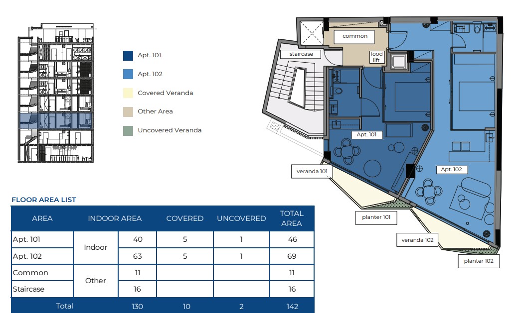It hosts 11 stylish accommodations in a 5 storey building with Roof Garden.
