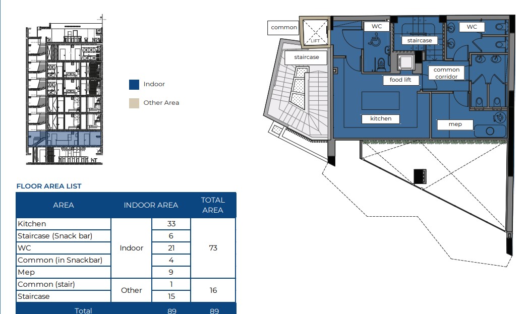 Mezzanine Floor consists of the Kitchen and WC, total area of 89sq.m.