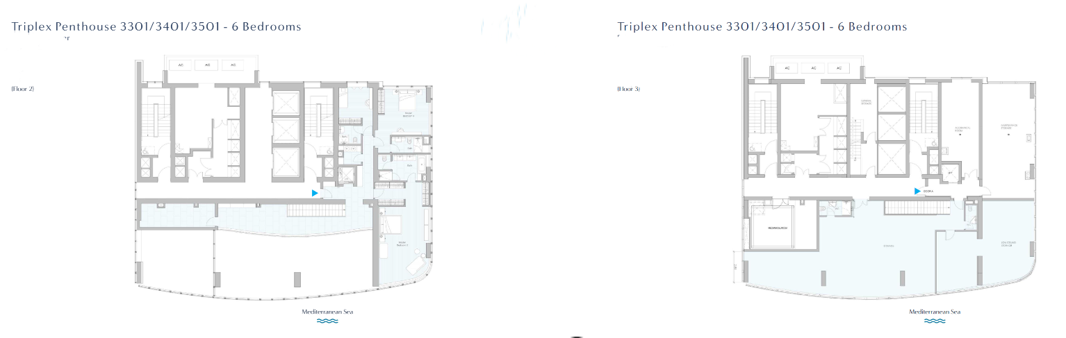 The stunning penthouse is an expansive residence  located on the top three floors 33rd, 34rd and 35th,covering a  massive 1058.6sq.m  total area with covered and uncovered verandas , enclosed terraces , storage spaces, BBQ, private lift , three living rooms, and private pool.