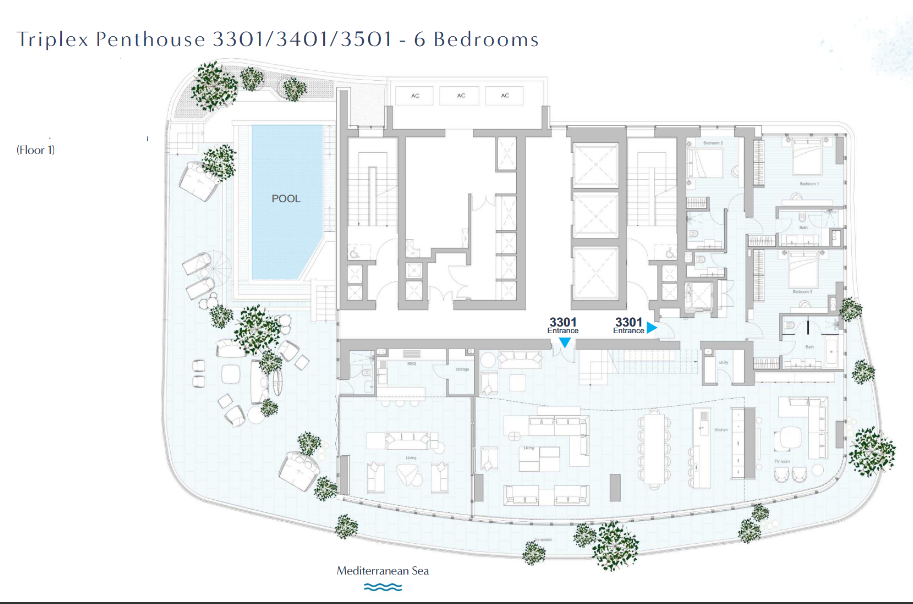 The luxurious penthouses facing the sea and offer splendid sea views of the Mediterranean. It is being build to the highest standards, ensuring top quality finishes and features. Great amenities and services waiting the residents. these include a 24-hour concierge service, a luxury lobby, 50m outdoor and 25m indoor swimming pools, 1050sq.m. spa facilities, a multi cuisine bistro, a restaurant, children's playground, landscaped gardens, underground parking and public parking areas, 200sq.m. double height gym overlooking the sea.