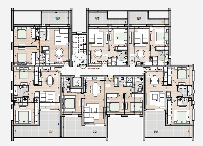 A wide range of living options is available across the two residential blocks. All units benefit from functional layouts, generous natural light, and private outdoor spaces such as verandas or terraces — thoughtfully designed for comfortable, modern living.