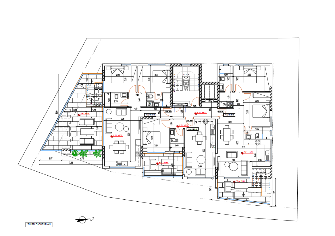 Located in a very central area of the town, beach is just 2km away. It is located next to the park and a big green area. It is a three floor building consisting of 1,2,3 bedrooms apartments and penthouses with roof terraces. It is ideal for families as all local amenities are close by. Efficiently designed spaces for the residents, having comfort and functionality in mind.