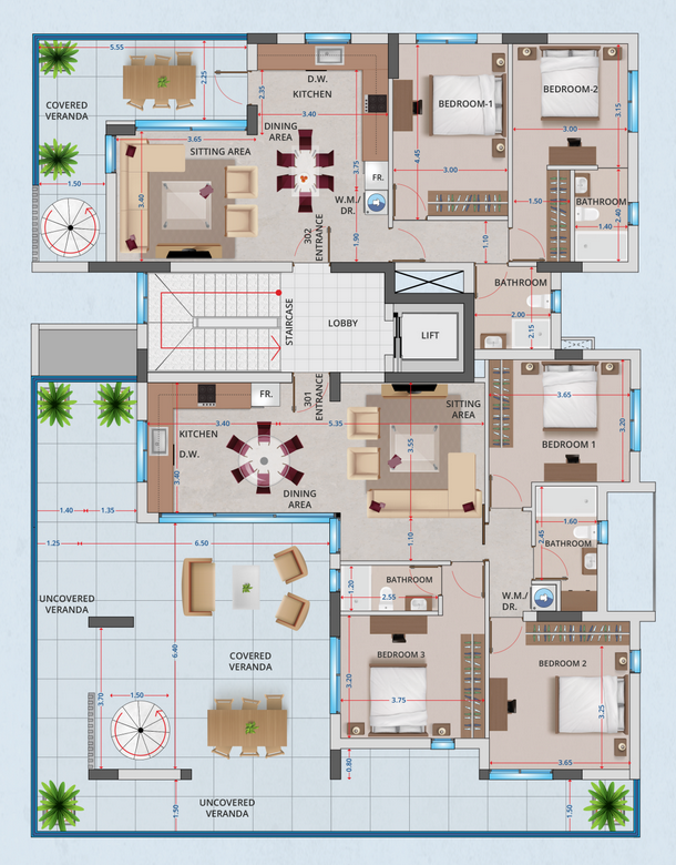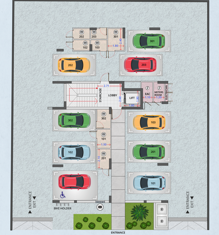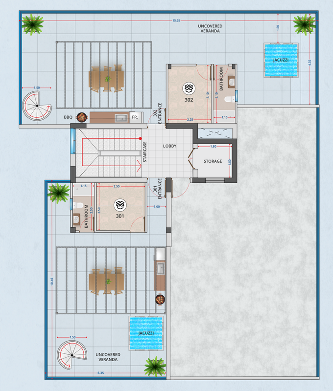 The building features a collection of spacious residences, including two-bedroom apartments and a three-bedroom penthouse. Each home is designed with modern layouts and high-quality finishes, ensuring both functionality and elegance. The penthouse enjoys exclusive roof garden access with private rooms, provision for a jacuzzi, and panoramic views — the perfect setting for luxury living.