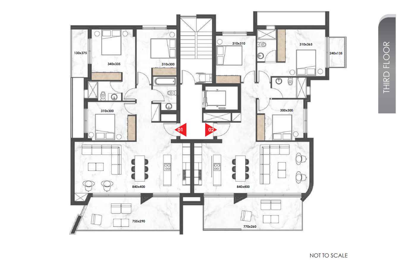 There is only 3bedroom apartment available, asking sales price of €365.000+vat.