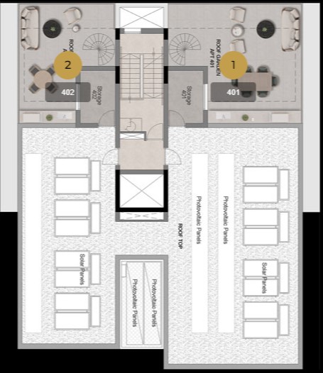 The whole building, like every apartment, has independent photovoltaic systems and charger provisions for electric cars, applying in practice the concept of “sustainability” and “green” buildings. All apartments will have installed A/C systems and under-floor heating with a heat pump system.