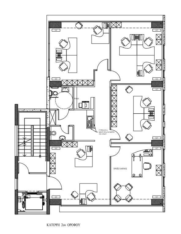 Located in a Business Centre at the entrance of the city.  The offices occupy the second  floor of the building, it is around 170sq.m. three separate offices, one conference room, reception, two wc and kitchenette.