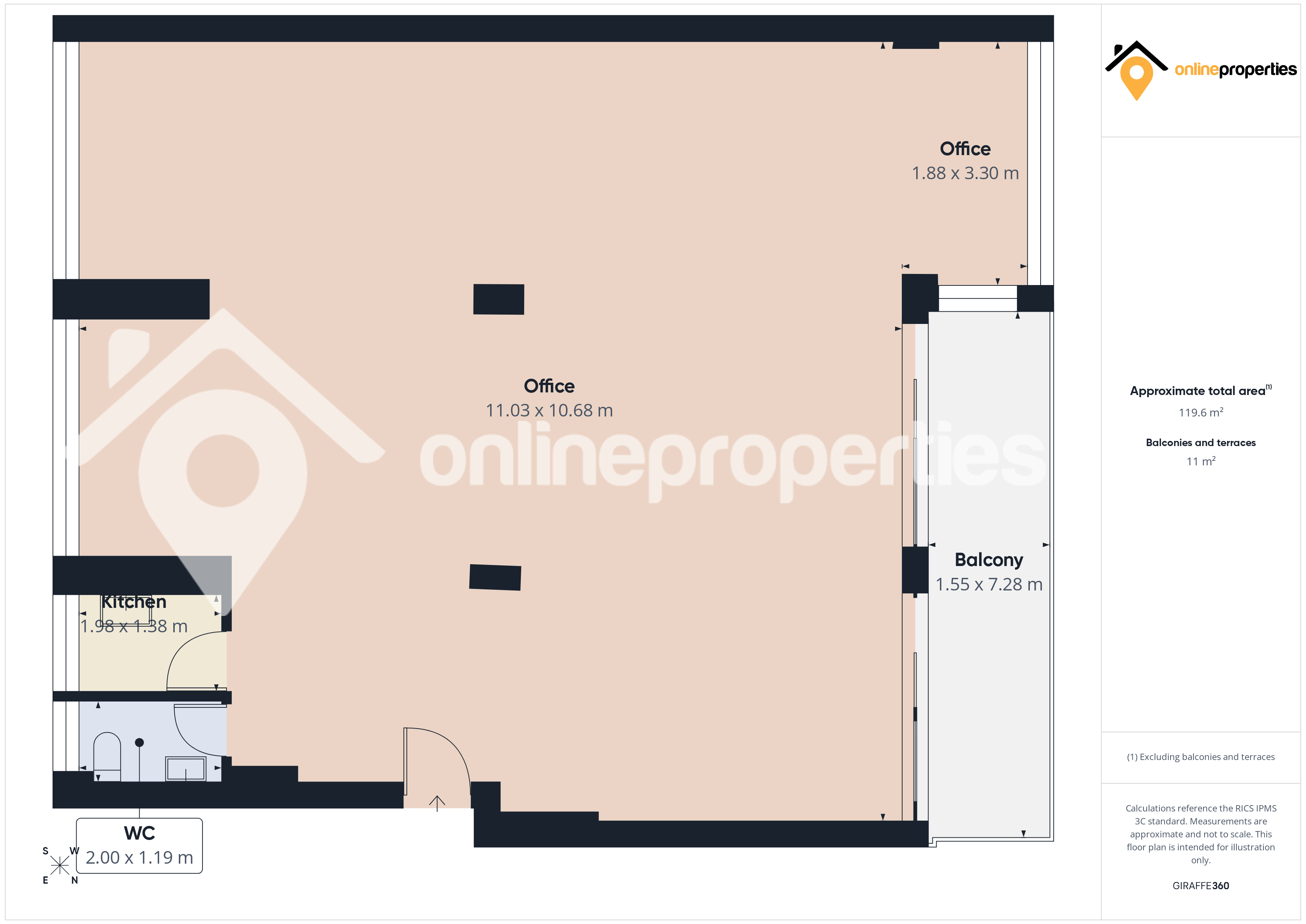 Total covered area: 119 m²